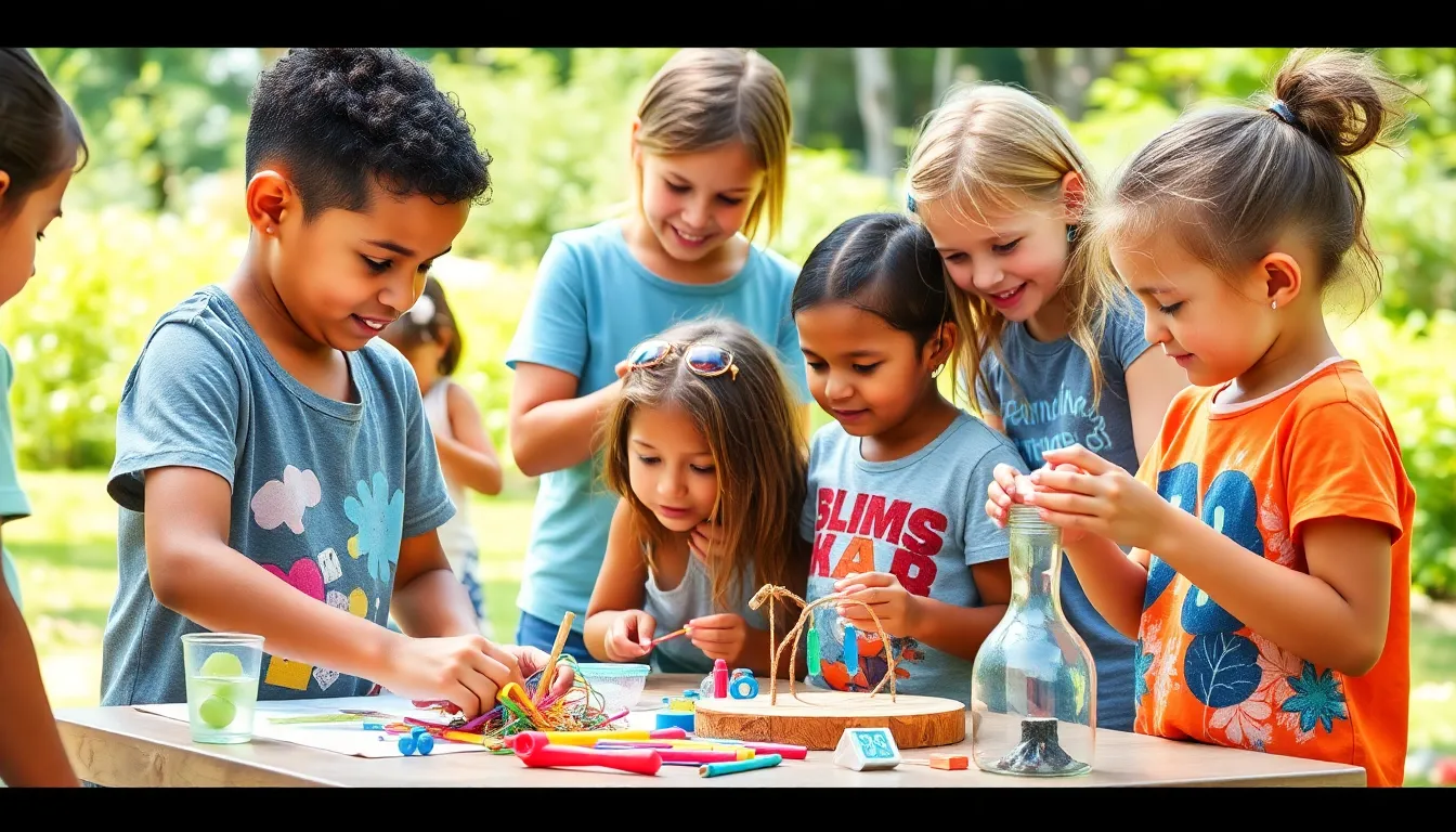 Children engage in diverse activities at STEAM Summer Camp, designed to ignite interest in science, technology, engineering, arts, and math. Each session focuses on hands-on experiences that promote creativity and teamwork.